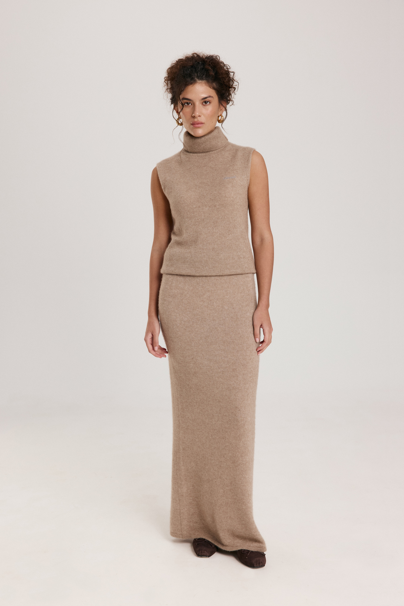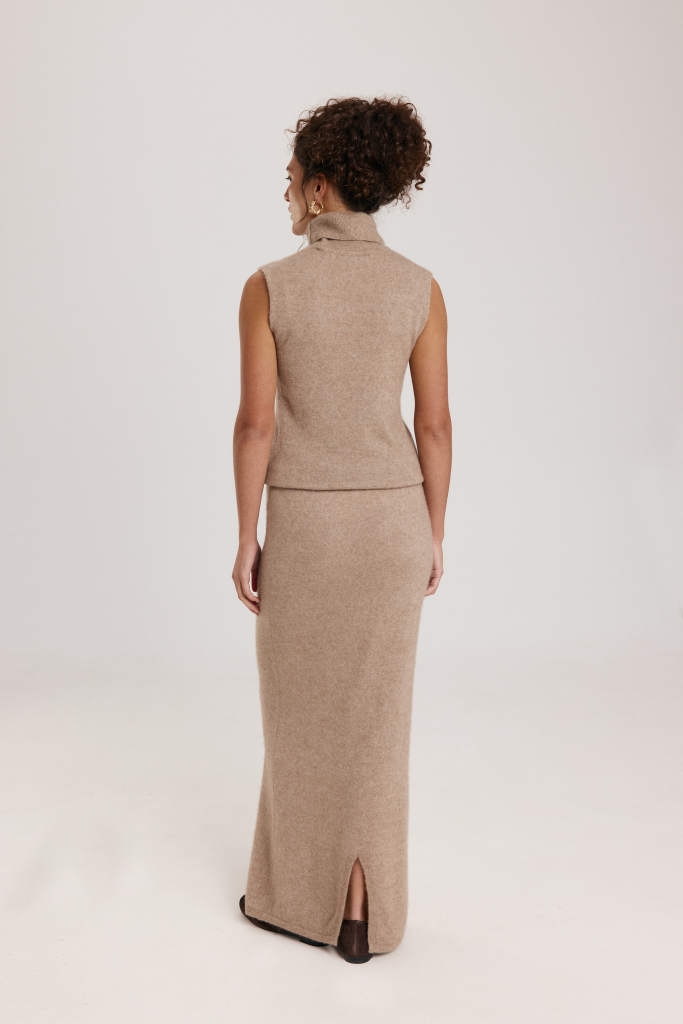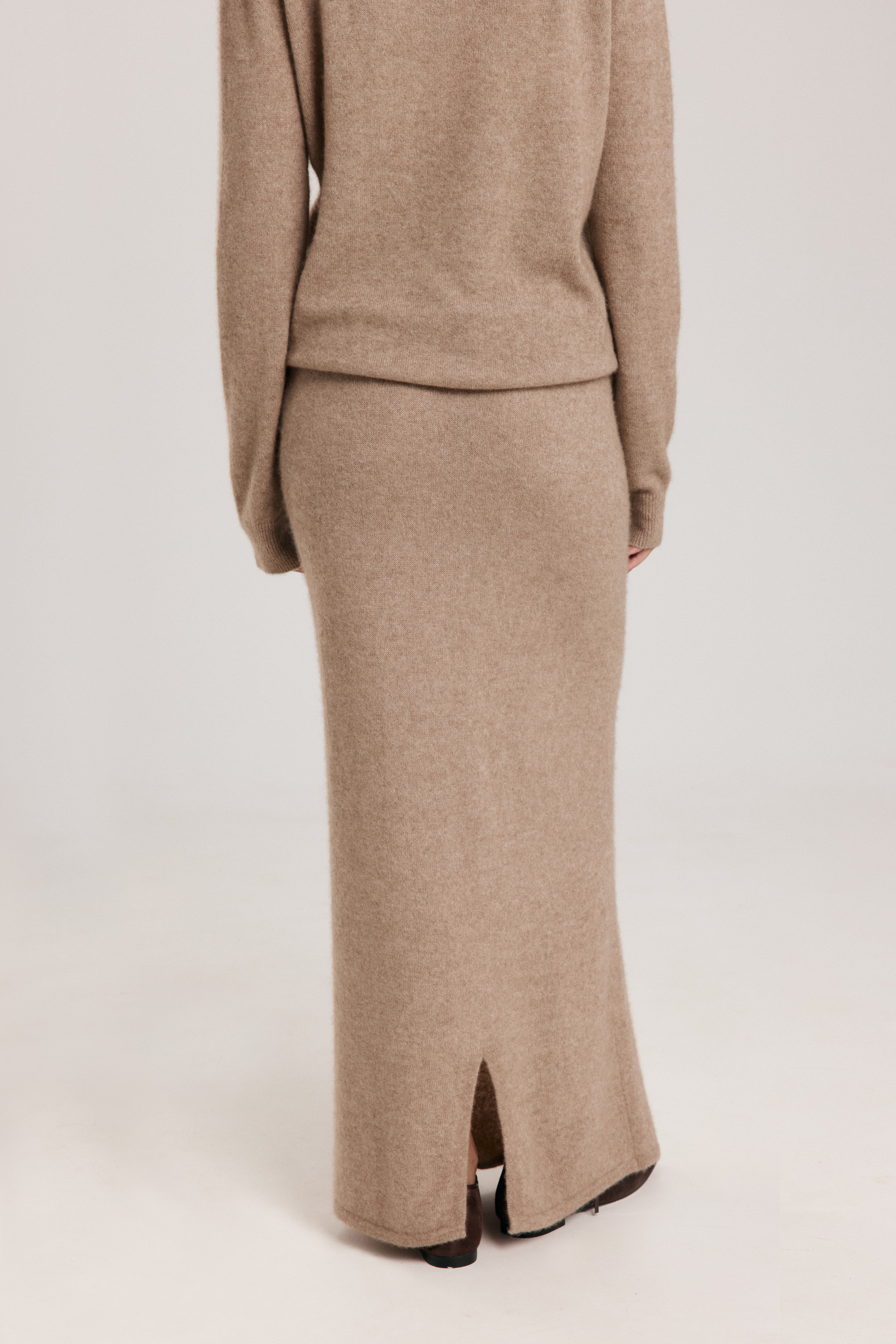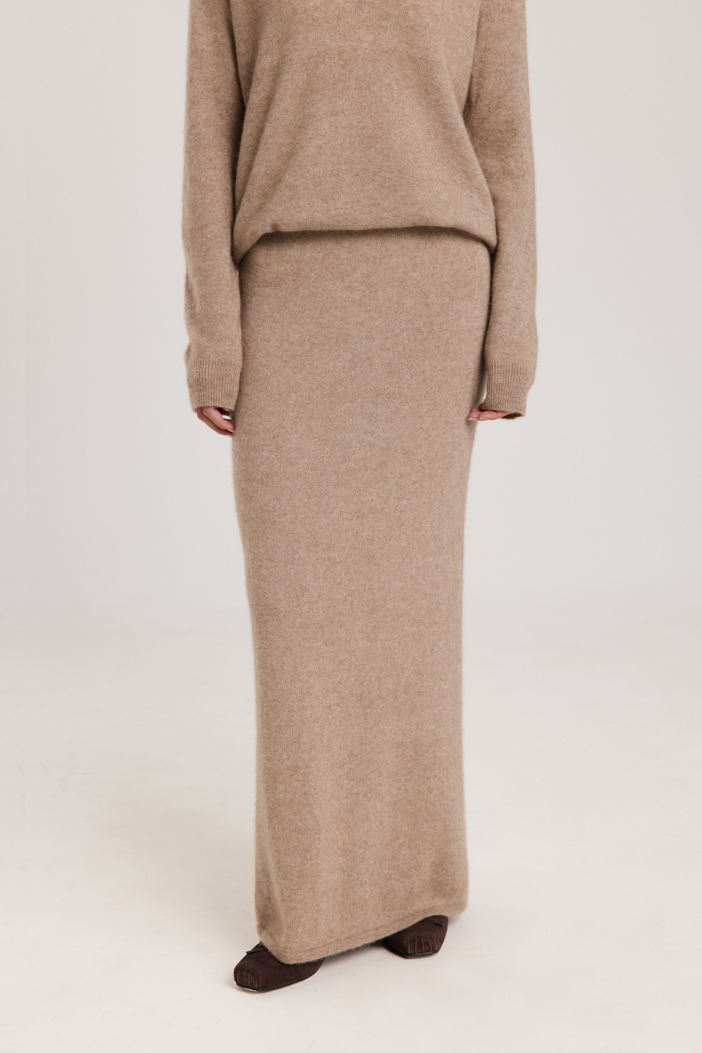 Юбка длины макси с эластичным поясом выполнена из премиального кашемира и шелка.
